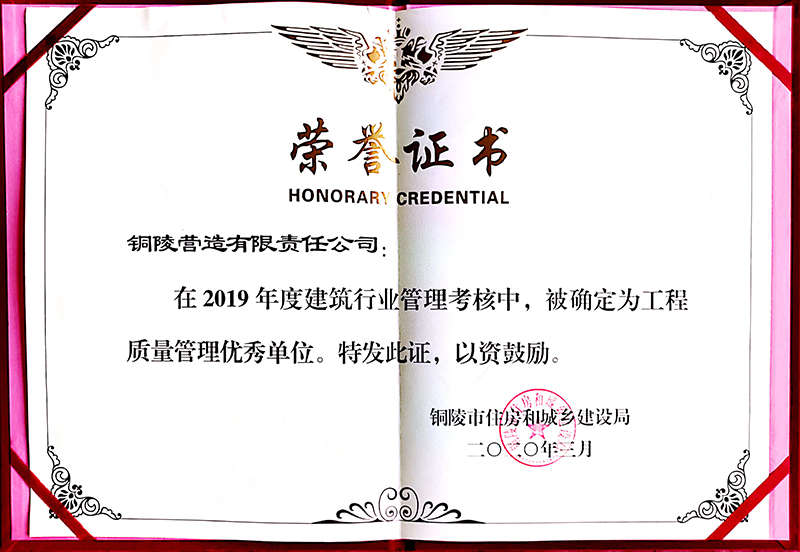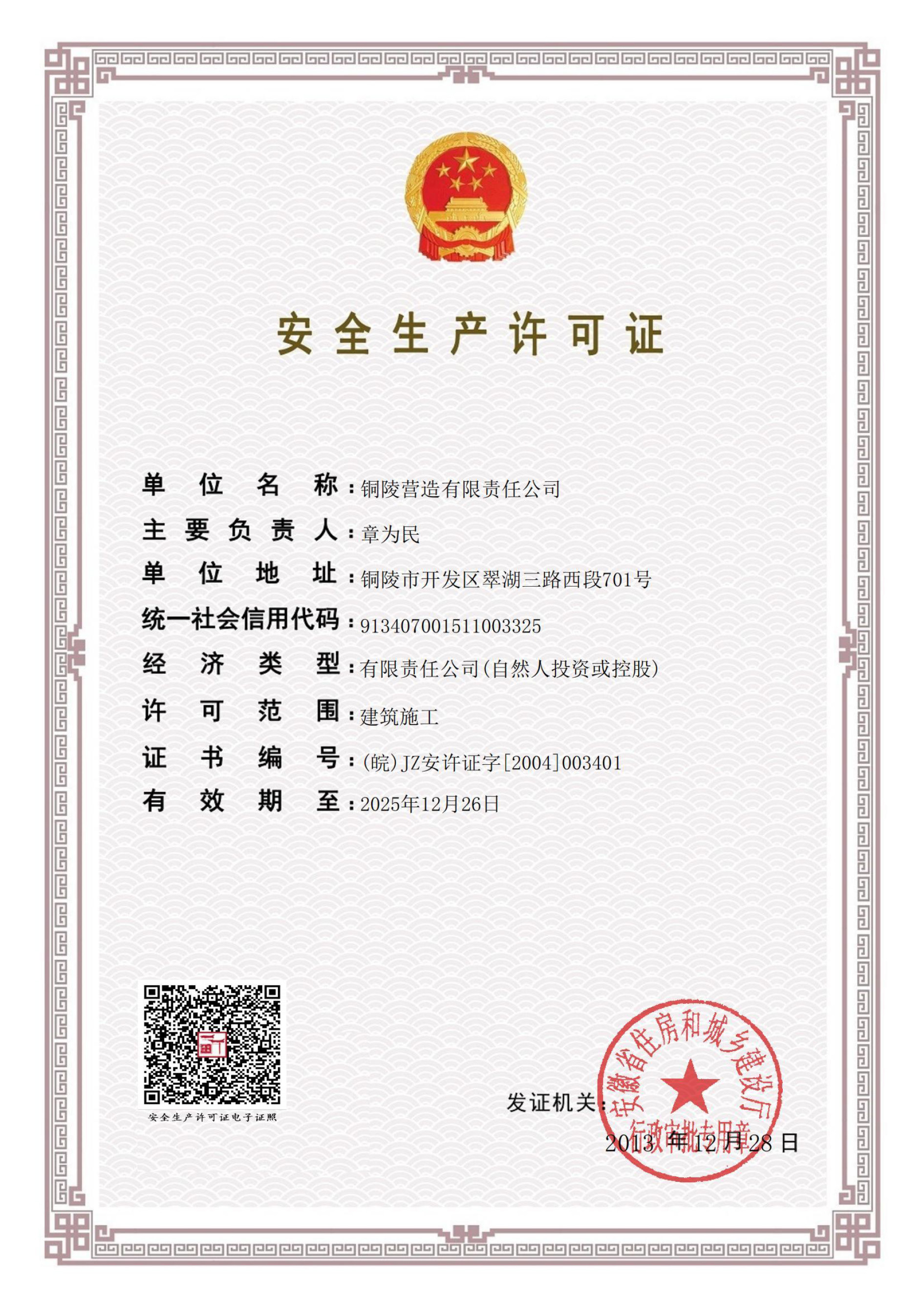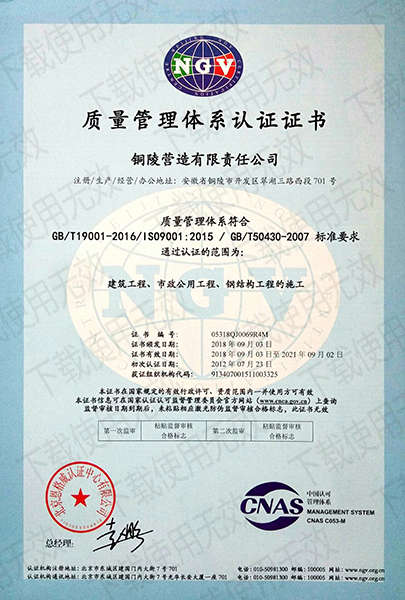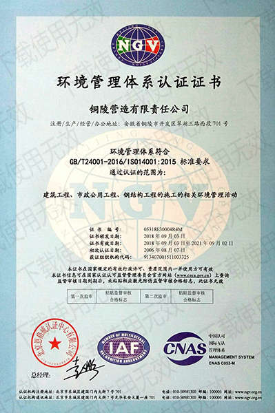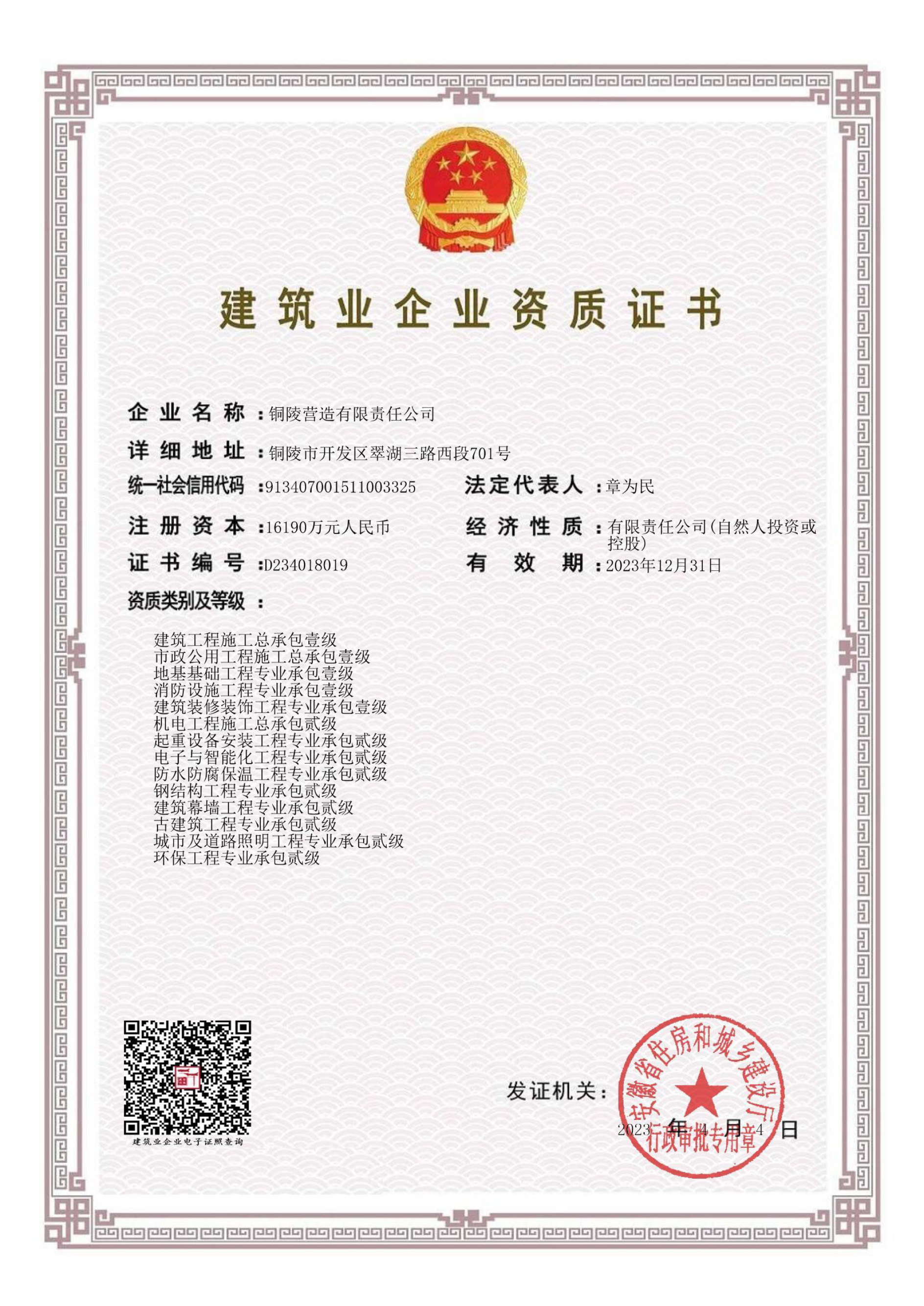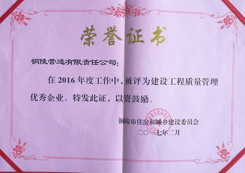 銅陵?duì)I造有限責(zé)任公司是國(guó)家住建部核準(zhǔn)的房屋建筑總承包一級(jí)企業(yè)。2006年7月,企業(yè)二次改制為民營(yíng)企業(yè),并更名為“銅陵?duì)I造有限責(zé)任公司”。目前,公司擁有房建施工總承包、市政公用工程總承包、鋼結(jié)構(gòu)專(zhuān)業(yè)工程承包、建筑裝修裝飾專(zhuān)業(yè)工程承包四項(xiàng)壹級(jí)資質(zhì),機(jī)電安裝、起重設(shè)備安裝、建筑幕墻三項(xiàng)貳級(jí)資質(zhì),地基與基礎(chǔ)一項(xiàng)叁級(jí)資質(zhì)。2008年通過(guò)北京恩格威ISO9001、ISO14001和OHSAS18001“三合一”體系認(rèn)證。